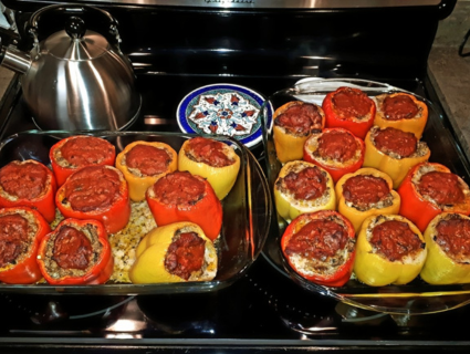 This one’s for the fall days when the sun hits just right through the trees, you’ve got a sweater on, a glass of red wine in hand, and the smell of roasted garlic and tomatoes dancing through the house. These stuffed red peppers have become a go-to in the Pflug home—not just because they taste incredible, but because they feel like home.